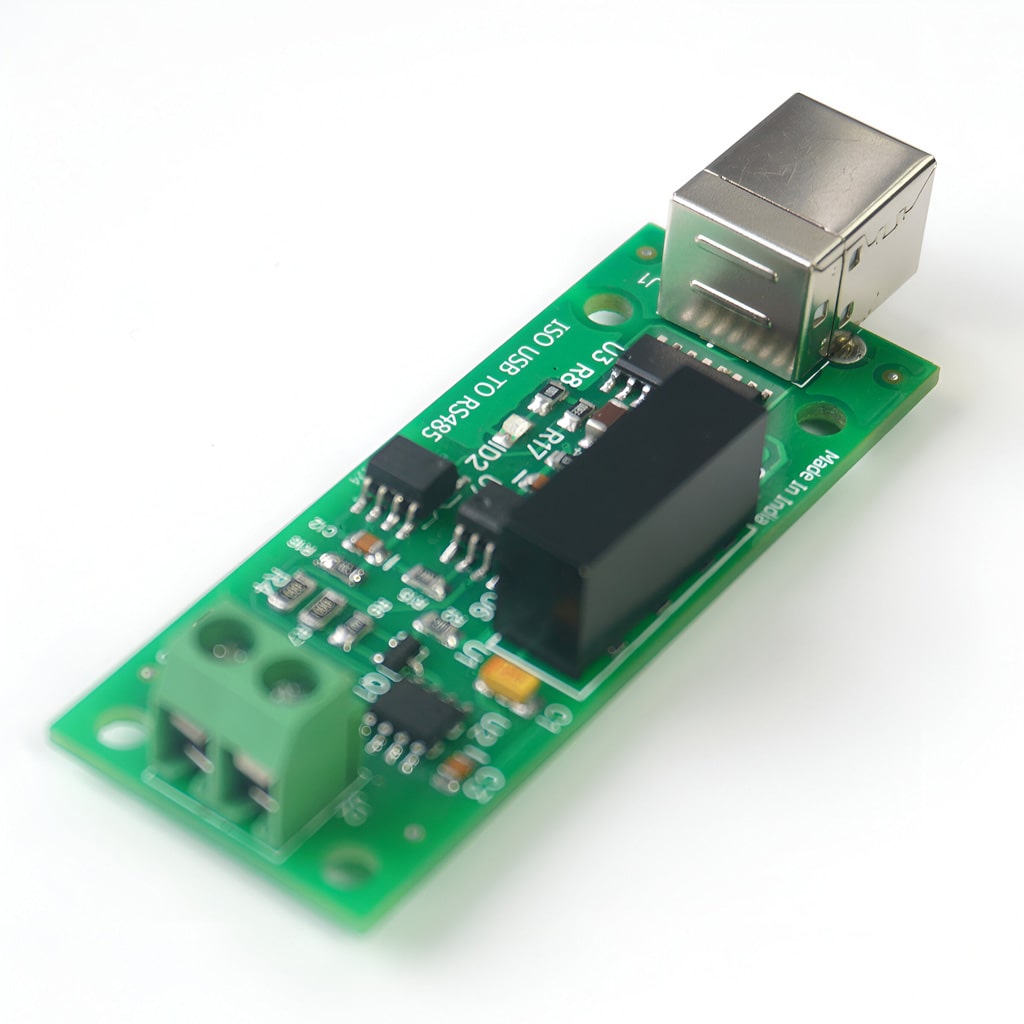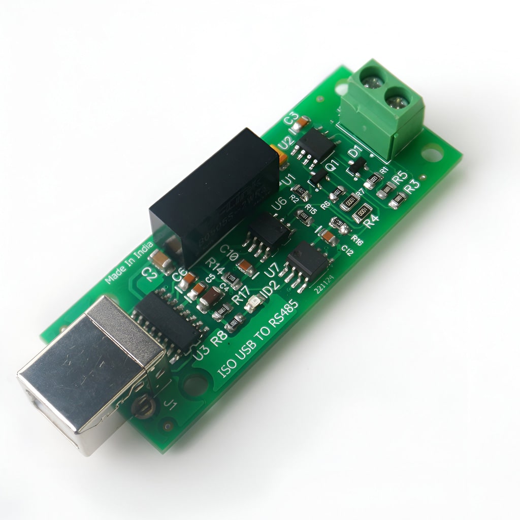 A reliable and robust USB-to-RS485 solution designed for secure, interference-free communication. With optical isolation, it protects connected devices from electrical noise, ground loops, and voltage surges, making it ideal for industrial automation, data acquisition, and remote monitoring.